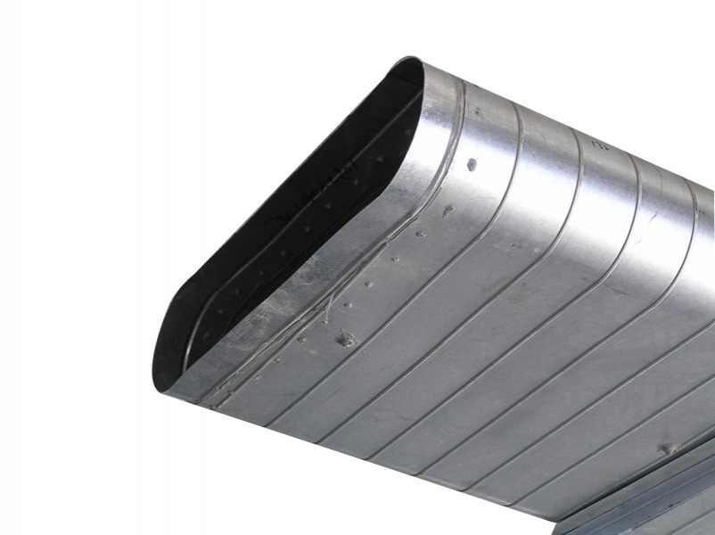 Основой для производства плоско-овального воздуховода служит спирально-навивной воздуховод. Его помещают в специальный станок, где ему придают плоско-овальную форму.
