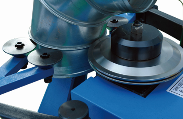 Данный станок главным образом предназначен для изготовления соединительных колен воздуховода. Накатка отбортовки и закрытие фальцевого замка может производиться одновременно.